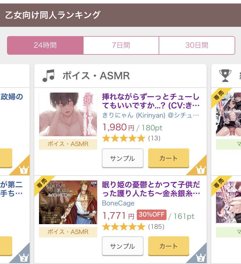 ・24時間以内「ボイス・ASMRカテゴリ」ランキング最高1位を獲得